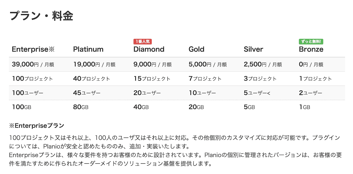 Planio: https://plan.io/ja/pricing/