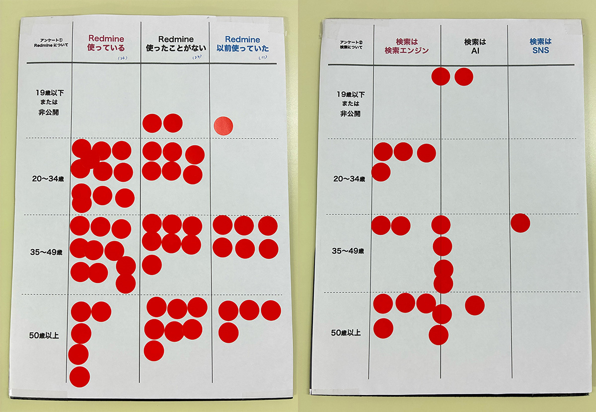 今回も展示ブースではRedmineの利用状況について簡単なアンケートを実施しました。アンケートに積極的にご協力いただいた皆さまのおかげで、貴重なデータを得ることができました。ご協力に感謝します。