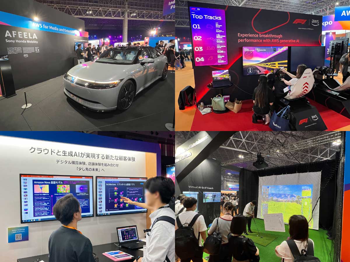 一言で表しにくいのですが、AWS様による出展エリアで、ソリューションの展示・相談やJAWS-UGコミュニティの発表、ワークショップなど行われていました。AWSのサービスやソリューションについての展示や質問の受付などが行われていました。AWSの専門家に相談してご意見をいただく機会はなかなかありませんので、改善のきっかけとか利用がざっくりとした段階での良い機会になるかと思います。(細かな相談はサポートで)