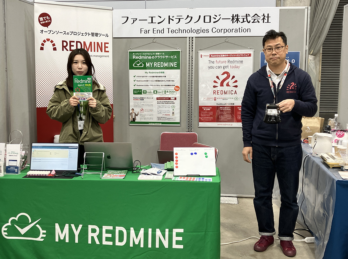 1階・大展示場にブースを出展します。今年はオープンソースのプロジェクト管理ツール「Redmine」と、「Redmine」のクラウドサービスをご紹介いたします。ブースではコーヒーを淹れてお待ちしております。ノベルティもご用意しておりますので、ぜひお立ち寄りください。