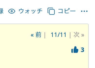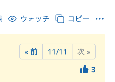 チケットの右上に表示される「前」「次」リンクはこれまでは通常のテキストリンクでした。これを、チケット一覧画面や活動画面で使われているページネーションと同じスタイルとしました。これにより前・次リンクが視覚的に認識しやすくなるとともに、クリック可能な領域が広がり操作性が向上しました。