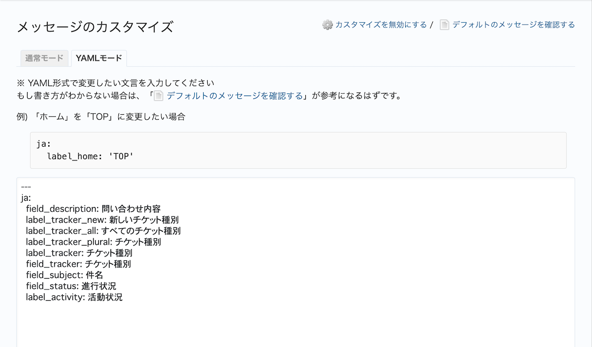Redmineの用語やメッセージを管理画面で自由に変更できるプラグイン「メッセージカスタマイズプラグイン」(Redmine.JP Blog)